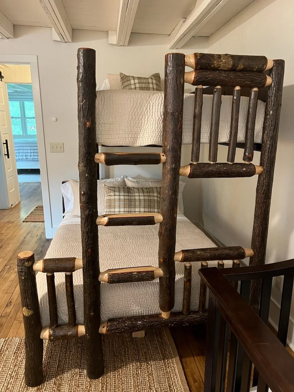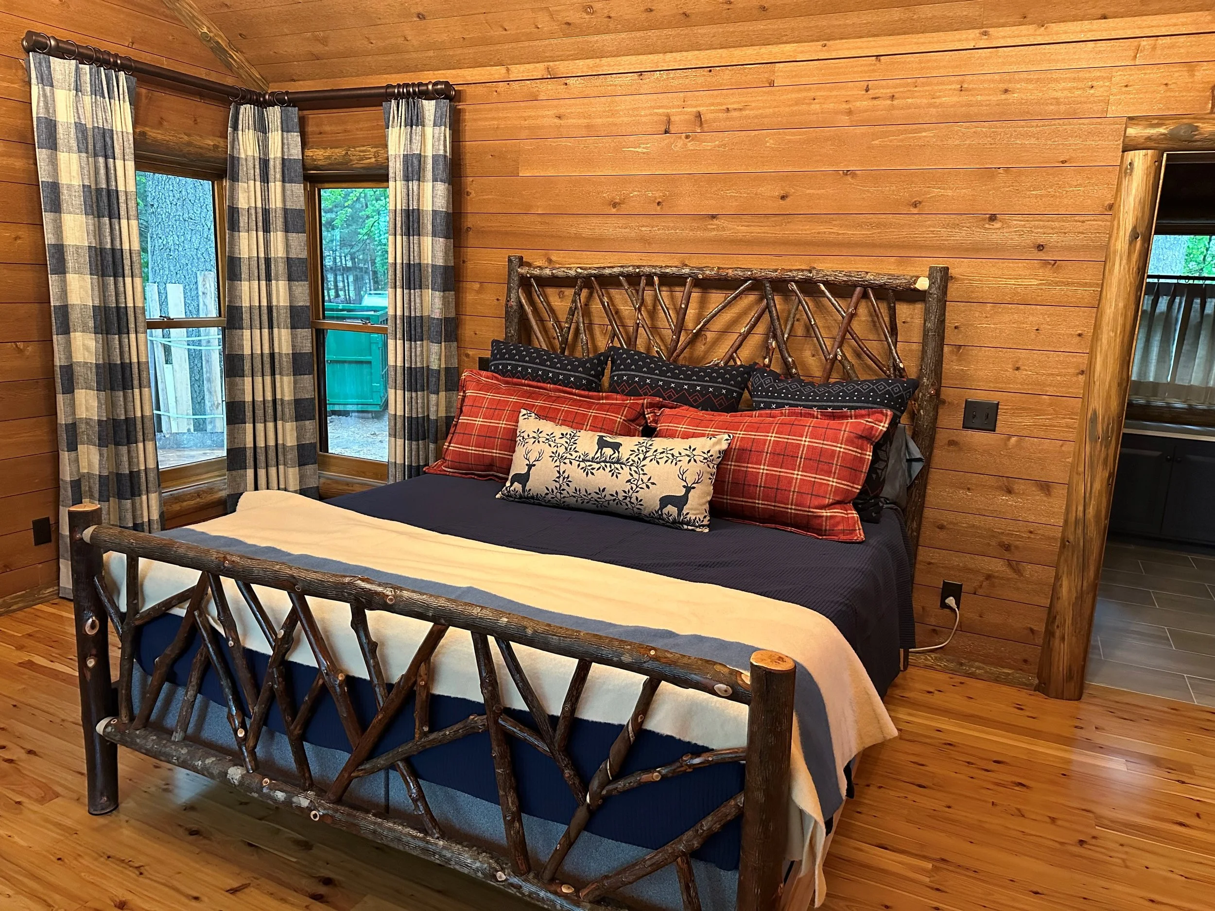 Our beds are available in several styles, some of which include Cedar Log Twig, Barnwood Americana, and Hickory Log Wagon Wheel. We offer a variety of staining options with most beds. And with a wide collection of Wooded River bedding, you can easily create a complete bed that matches your desired aesthetic!
